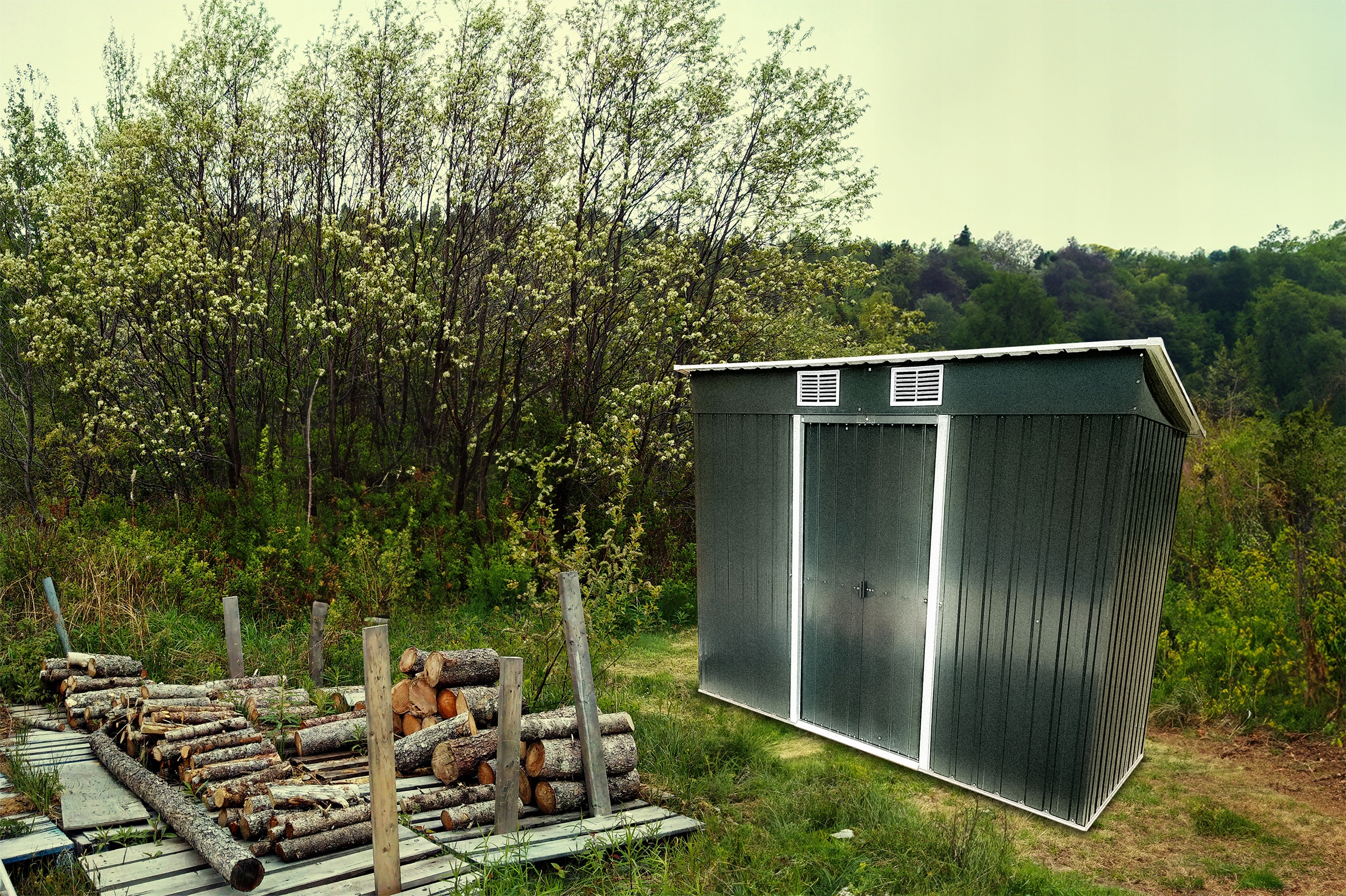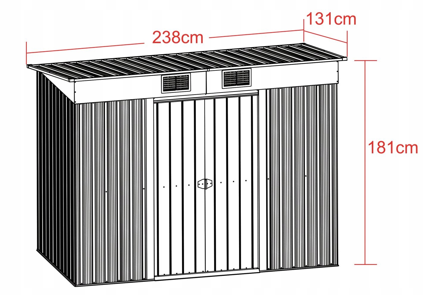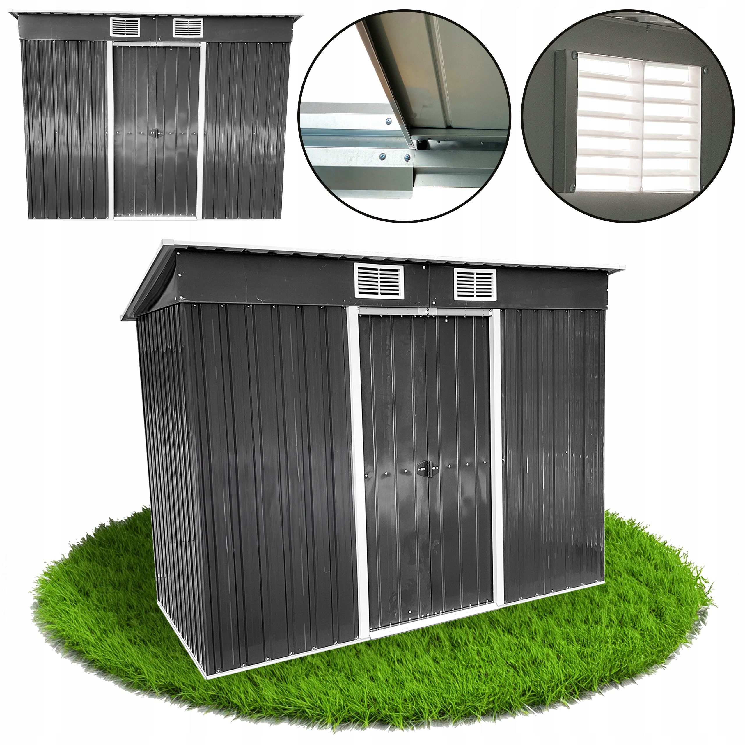 ✅ Materiał: ściany i dach (metalowa płyta o grubości 0,25 mm), rama (ocynkowany metal o grubości 0,6 mm).