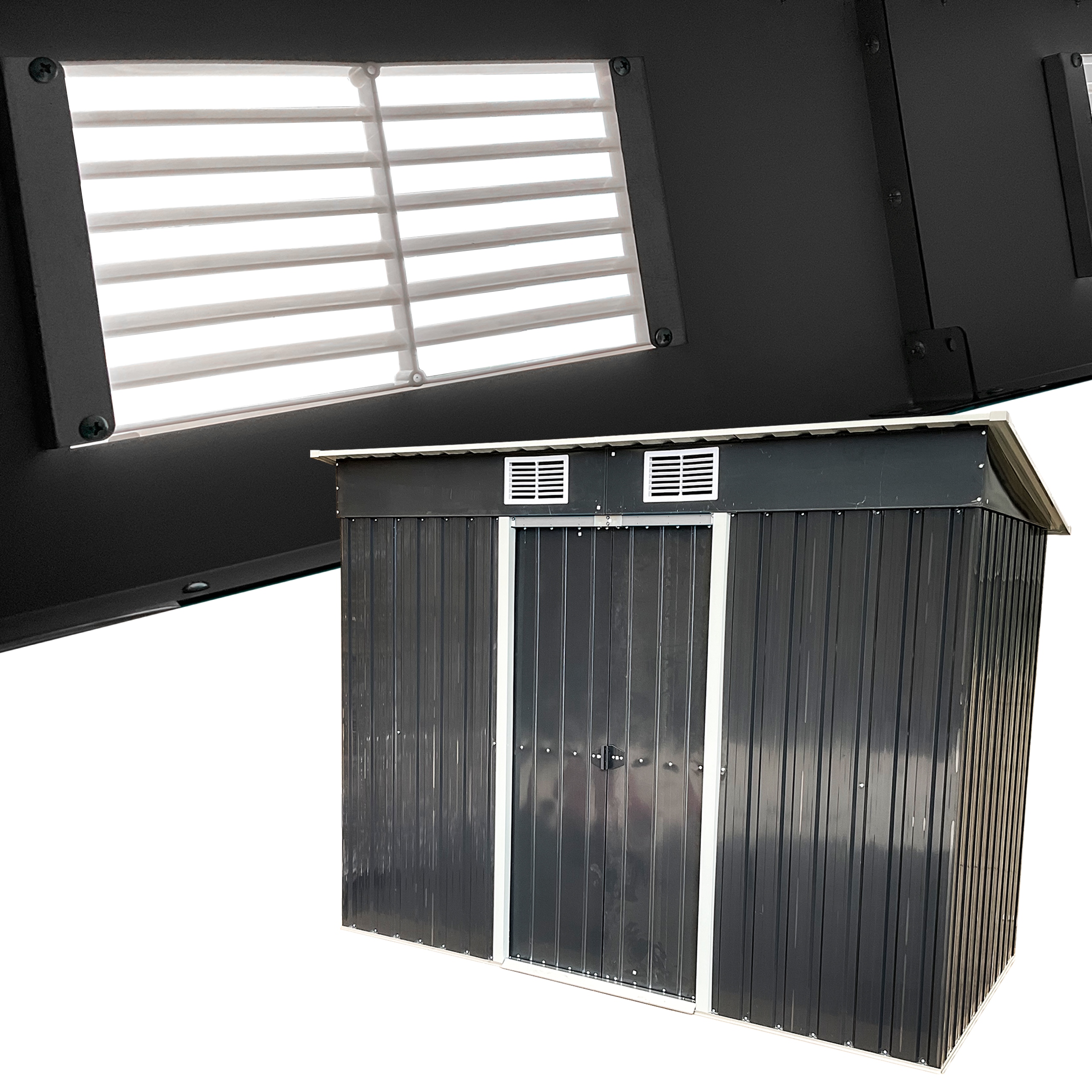 ✔️ Dodatkowym atutem domku narzędziowego są otwory wentylacyjne, które zapewniają niezbędną cyrkulację powietrza.