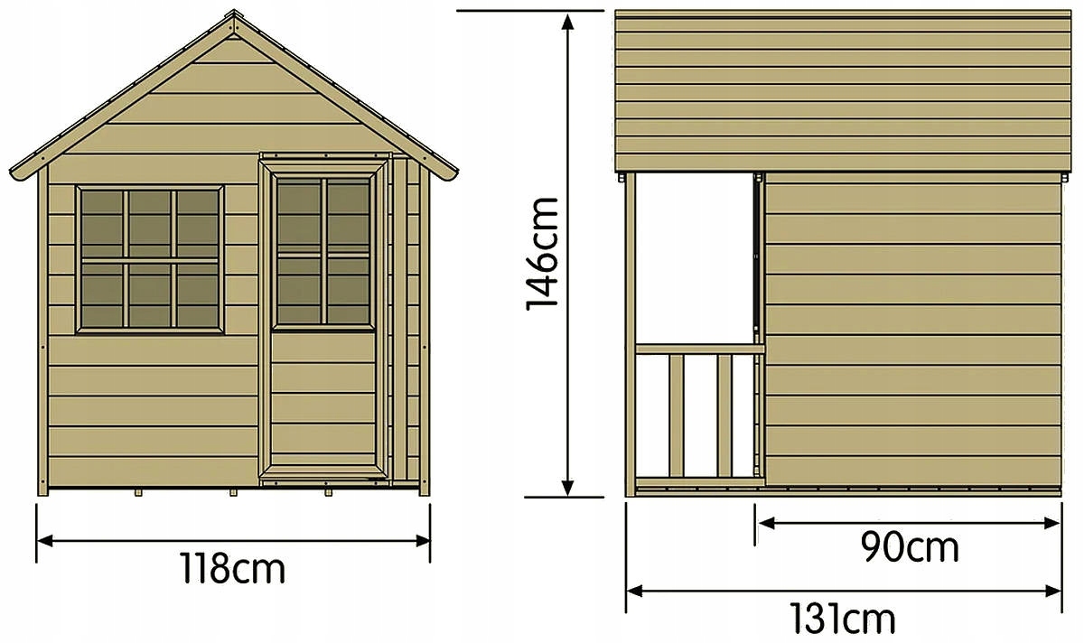 - Wymiary domku: 131cm x 118cm x wysokość 146 cm