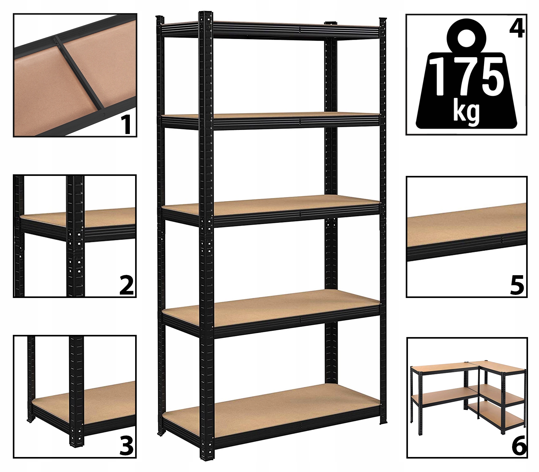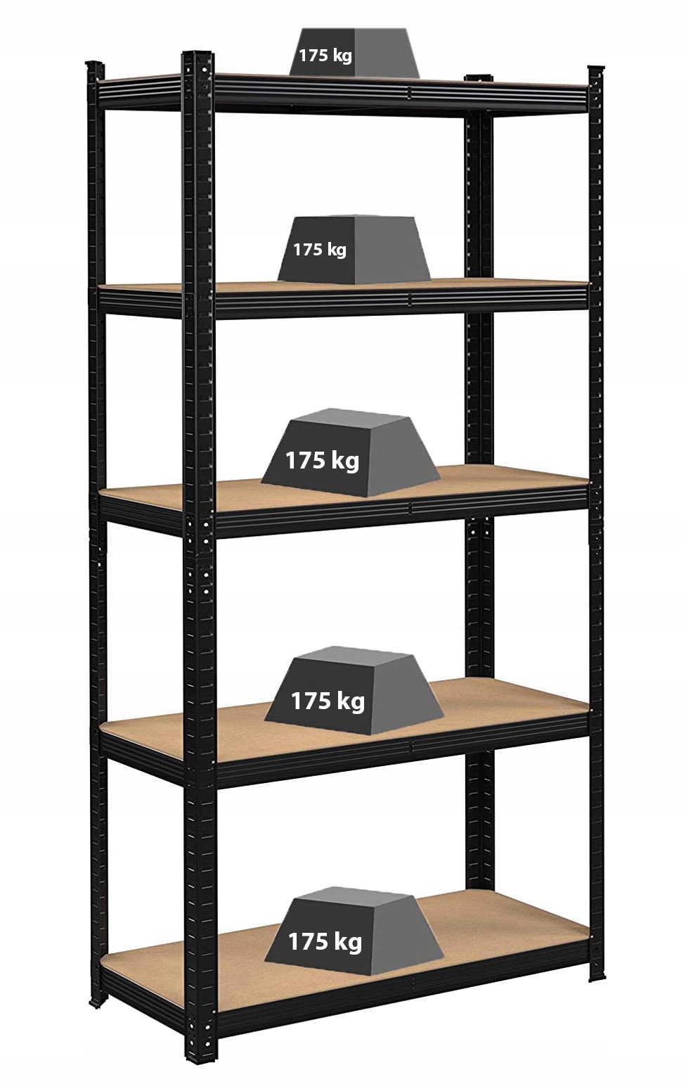 REGAŁ MAGAZYNOWY METALOWY GARAŻOWY OCYNK CZARNY PÓŁKI MDF 180x90x30 875 kg