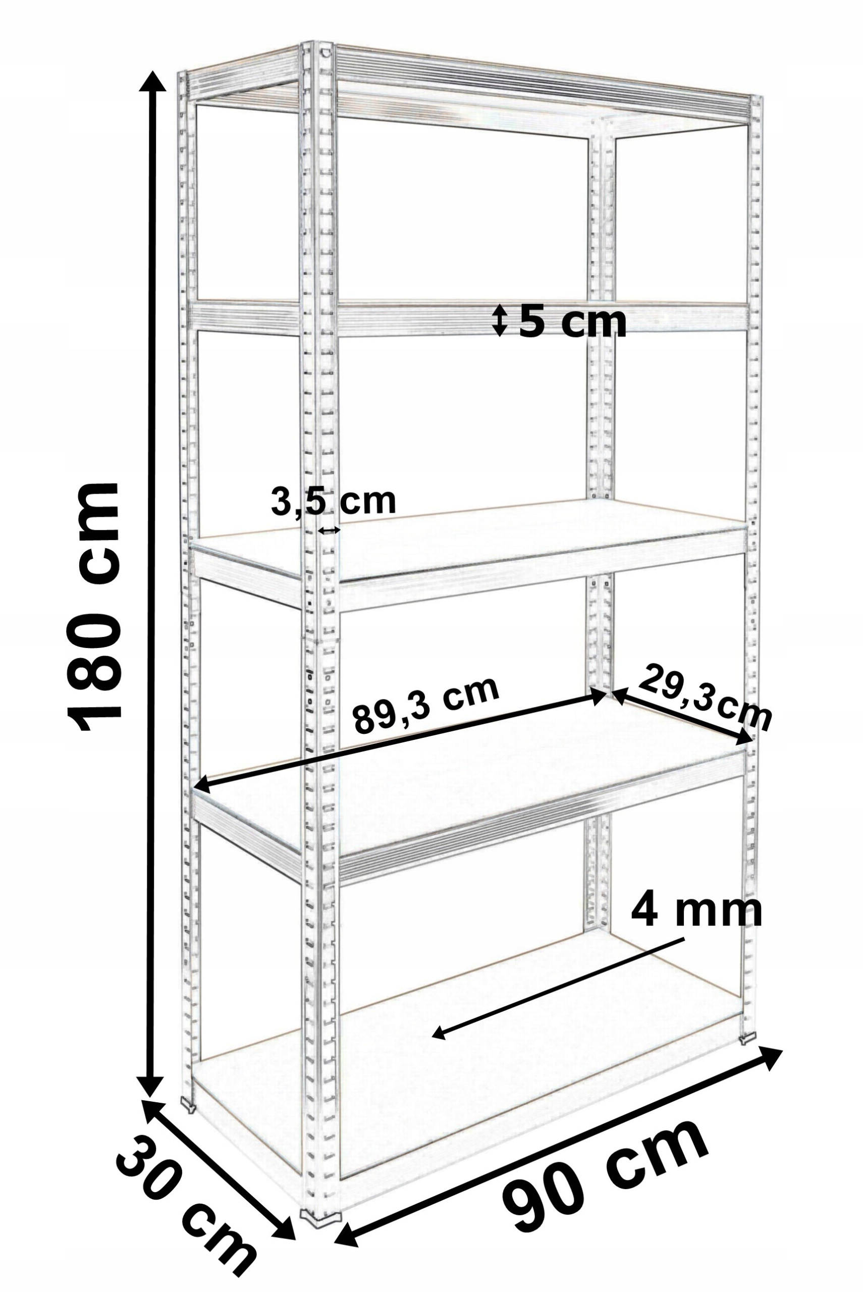 Regały magazynowe to świetne rozwiązanie do utrzymania porządku w piwnicach, garażach, magazynach czy sklepach. Zostały wykonane z wysokiej jakości materiałów takich jak: ocynkowana stal oraz płyty MDF. Solidne półki o maksymalnym obciążeniu 175 kg każda dają gwarancję stabilności i wytrzymałości. Montaż bezśrubowy sprawia, że złożenie regału jest proste i nie zajmuje wiele czasu. By sprawniej złożyć ramę i ułatwić sobie pracę można użyć gumowego młotka i płaskiego śrubokręta. Regał pozwala nam na dowolną konfigurację półek – otwory rozmieszczone są na całej długości nóg. Można go także np. podzielić na dwa mniejsze regały lub stoły warsztatowe. Nogi regału zabezpieczono nakładkami z tworzywa. Prezentowana wersja została wzmocniona wspornikami na środku każdej półki. Sprawia to, że regał jest bardziej wytrzymały od standardowych wersji. Jego całkowite obciążenie to aż 875 kg!