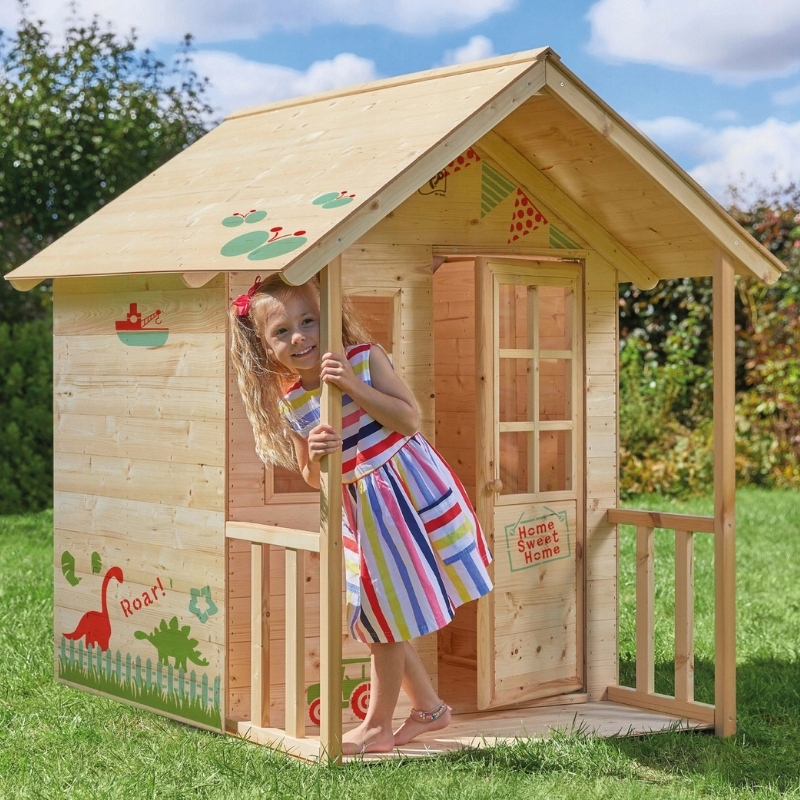 Domek w stanie surowym można pomalować dowolnymi kolorami, zgodnie z własną wizją, co tylko podsyci kreatywność dzieci i rodziców.