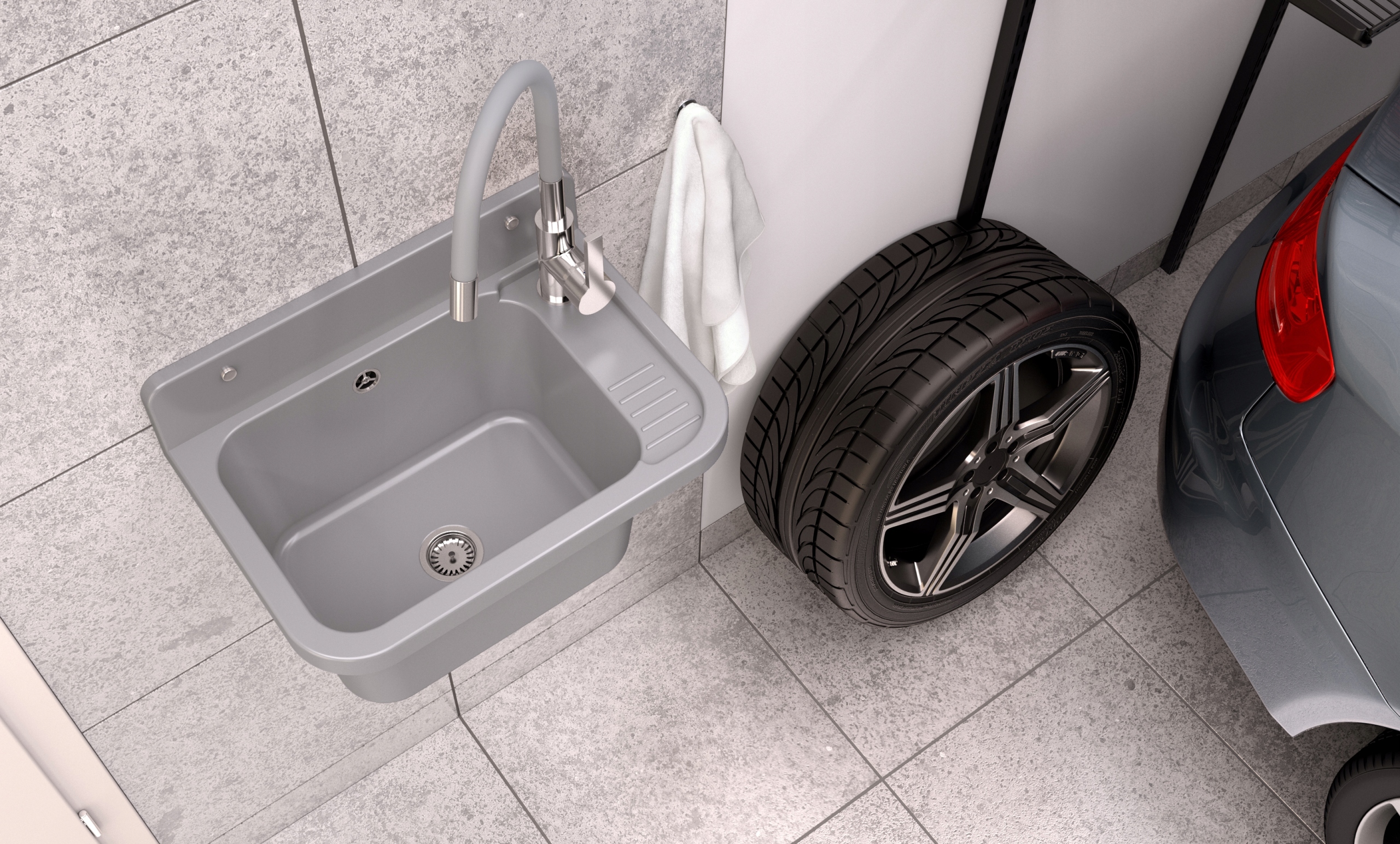 ZLEW GOSPODARCZY GARAŻ PRALNIA KOMORA SZARA SYFON